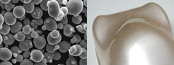 Beaucoup moins utilisée que les deux autres géométries des teintes métallisées ('cornflake' et lenticulaire), cette forme sphérique fournit un type différent d'apparence esthétique. Ces pigments fournissent beaucoup moins d'opacité en raison de leur petite superficie, et la lumière reflétée des surfaces polies produit l'effet de multiples pointes d'épingles qui miroitent.
