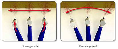 La régularité de l'application dépendra de 2 facteurs principaux : un mouvement bien parallèle par rapport au support et un chevauchement des passes correct et régulier.