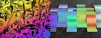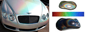 Les peintures holographiques ou prismatiques sont constituées de pigments diffractifs qui décomposent la lumière en un arc-en-ciel. Le pigment contient un matériau optiquement transparent, sur lequel est disposée une couche de métallisation réfléchissante.