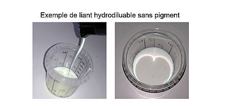Simple sur le tableau, mais extrêmement complexe dans la réalité, il a fallu trouver et développer des liants et résines compatibles avec l'eau.