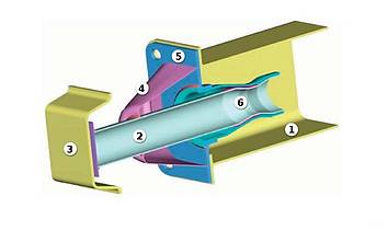La poutre s'appuie sur deux absorbeurs coniques à déformation programmée. L'absorption d'énergie (85 kN) permet de limiter l'impact sur les brancards et d'éviter ainsi leur remplacement lors des chocs inférieurs à 15 km/h.