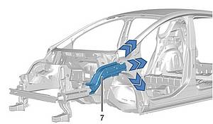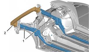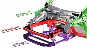- D'une voie haute, située en partie supérieure des ailes, avec des renforts qui vont guider l'énergie du choc vers les montants de baies et les profilés de portes.