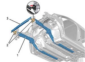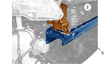 Déposer la poutre centrale avant (3) suivant la flèche.