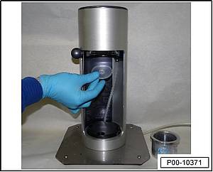 | Mettre en place le godet de remplissage du chargeur sur la bombe d'aérosol à remplir. |