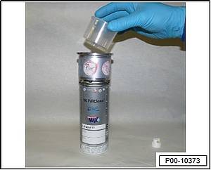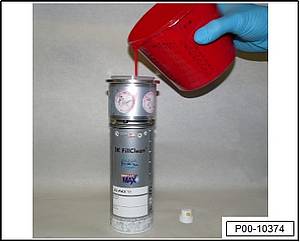 | Remplir le godet de la peinture désirée (correspondant à la référence de la bombe) jusqu'au trait. Le capuchon inséré évite que le godet ne se salisse. |