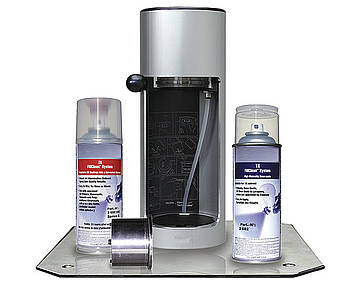 Les chargeurs remplissent des aérosols pré-remplis de solvants et d‘agents propulsifs qui sont en attente de recevoir la peinture 1K ou 2K de votre choix.