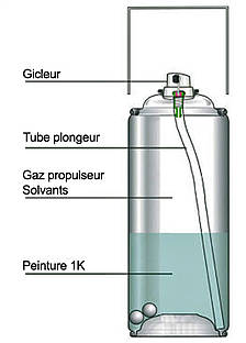 - d'autre part, d'un gaz assurant la propulsion du produit (les gaz comprimés ou liquéfiés).