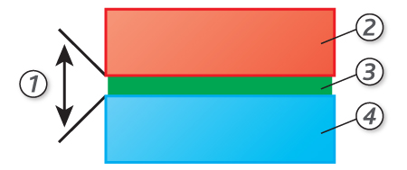 (1) Jeu d'assemblage, (2) Substrat 1, (3) Joint de colle, (4) Substrat 2