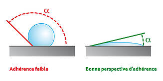L'adhésion d'un adhésif à un substrat est directement liée à l'énergie de surface de ces derniers. Pour obtenir un bon mouillage de la surface, l'adhésif doit avoir une énergie de surface inférieure à celle du substrat.