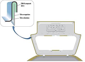 Pour les pièces de carrosserie, le magnésium est présent sur les doublures d'ouvrants. Sur un hayon arrière, par exemple, il a été possible de réunir en une seule pièce la tôle intérieure et les renforts nécessaires à la fixation de la serrure, de l'amortisseur pneumatique et aux fixations du moteur d'essuie-glace. Ces différentes pièces sont moulées en une seule opération. Pour fixer les pièces boulonnées, on utilise des écrous noyés en aluminium très résistants.