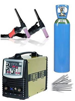 Poste à souder TIG, courant alternatif pulsé, équipé de gaz Argon pur et baguette de soudure Mg.