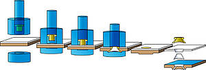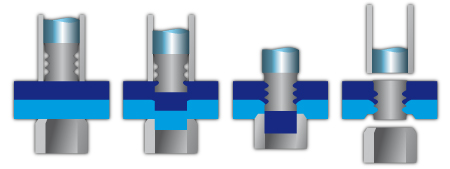 Le rivetage auto-poinçonneur est une technologie qui permet d'assembler des matériaux de nature et d'épaisseurs différentes. Le principe consiste à faire pénétrer un rivet creux par poinçonnage dans la ou les premières épaisseurs de matière, puis le faire s'évaser dans l'épaisseur inférieure sans perforer celle-ci, grâce à la reprise de l'effort par une matrice. On réalise ainsi un point d'assemblage en une seule opération, de haute résistance, vérification sans essai destructif, pas d'échauffement dans la zone d'assemblage, pas de préparation des surfaces à assembler, aucune émission d'étincelle, de fumée ou de gaz, procédé peu bruyant et faible consommation en énergie.