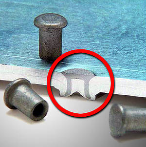 - Absence, autant que possible, de transpercement de la feuille inférieure de l'assemblage par le rivet