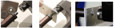 Le rivet de réparation est plus gros, il faudra donc calibrer le trou à l'aide d'un autre ensemble poinçon/matrice, puis sertir le nouveau rivet.