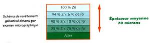 - La couche de zinc subsiste en grande partie (grâce à une faible évaporation et l'effet cathodique de la couche de zinc)