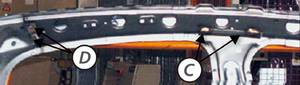 F. Liaison pied de caisse / doublure de montant de pare-brise