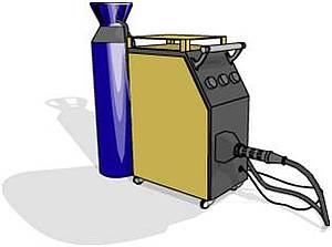 Le matériel utilisé pour la soudo-brasage MIG est identique à celui que l'on trouve dans tous les ateliers de carrosserie, c'est-à-dire un bon poste à souder MAG, qu'il faut transformer :