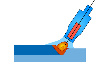 - Dans la pratique, gestuelle semblable à la soudure MAG