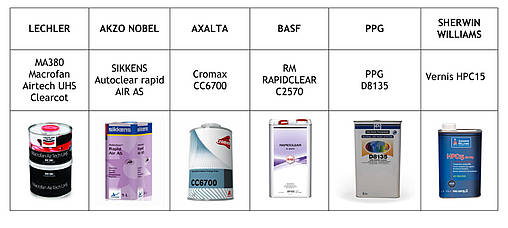 | Constructeurs concernés | Ce vernis est plutôt destinée aux réparateurs, toutefois tous les véhicules des constructeurs sans distinction peuvent être recouvert par ce type de vernis. |