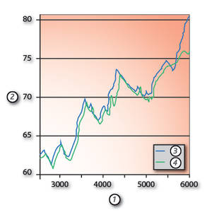 (1) Régime moteur en Tr/mn, (2) Décibel, (3) Pare-brise standart, (4) Pare-brise acoustique