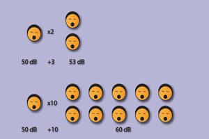 Une multiplication du bruit par 2 entraîne une augmentation du niveau sonore de 3 dB. Pour augmenter le niveau sonore de 10 dB, il faut multiplier les sources de bruit par dix.