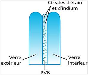 Déjà utilisé en particules insérées dans la couche de PVB pour certaines technologies de vitrage feuilleté athermique.