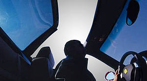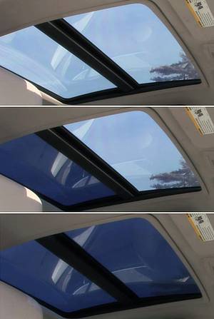 La taille du toit est d'environ un mètre carré, il contient des cellules électrochimiques qui donnent un éventail de cinq niveaux de teintes. Ces teintes peuvent être modifiées au moyen d'un interrupteur situé sur la console centrale. Il ne faut que 60 secondes au verre pour aller du plus sombre au plus clair. Lorsque le moteur est éteint, le verre revient automatiquement à la teinte la plus sombre pour protéger le poste de pilotage.