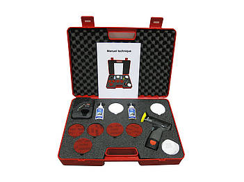 Mallette pour restauration d'optique VBSA avec gamme d'abrasifs et lustrants en version électrique.