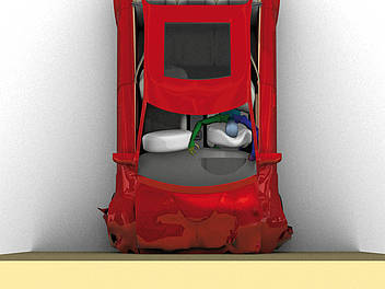 Et, en raison de sa sensibilité à la fissuration sous contrainte, son utilisation est limitée à des applications à faible contrainte. Un pare-brise en PC impose une autre conception de carrosserie pour que le véhicule conserve la rigidité désirée en cas d'accident, le pare-brise en verre silicaté feuilleté quant à lui étant justement devenu un élément porteur de la carrosserie toujours plus important. Il assure à lui seul 30% de la rigidité du véhicule.