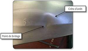 Cette crête d'arrêt, formant parfois une arête très marquée, empêche le métal de reprendre sa forme, car c'est la zone où il y a eu création du maximum de tensions internes.