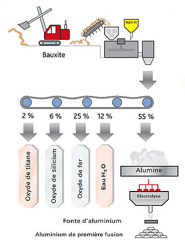 La fabrication de l'aluminium se décompose donc en deux étapes :