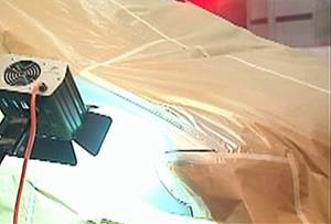 Comme on peut le voir ci-dessous, le séchage complet de la peinture nécessite toute l'intensité de l'éclairage de la lampe, le rayonnement ultraviolet fléchit très vite en dehors de la superficie.