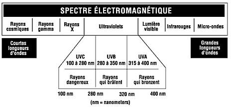 Le rayonnement ultraviolet comprend trois sortes de rayonnement qui se définissent en fonction de la longueur de leurs ondes :