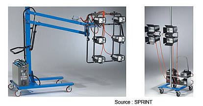 Certains fabricants proposent des supports comportant plusieurs lampes, permettant ainsi de sécher une surface plus importante :