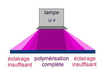- Sécher entre 2 et 4 minutes suivant l'épaisseur sous l'action de la lampe U.V.