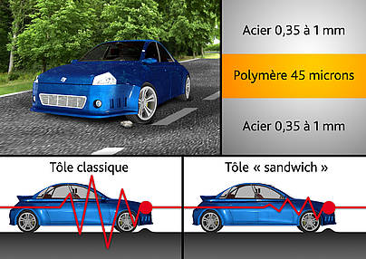 Des tôles sandwich d'aluminium / polypropylène / aluminium ont été développés pour une application potentielle de ces matériaux pour les panneaux de carrosserie automobile dans les futures voitures de haute performance avec une réduction de poids significative.