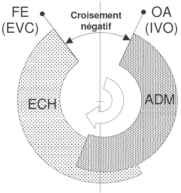 Une épure croisée permet par son recouvrement de créer un balayage du volume mort ; si elle est décroisée, elle enferme des gaz d'échappement qui participent au cycle suivant. La fonction EGR est assurée par recirculation interne