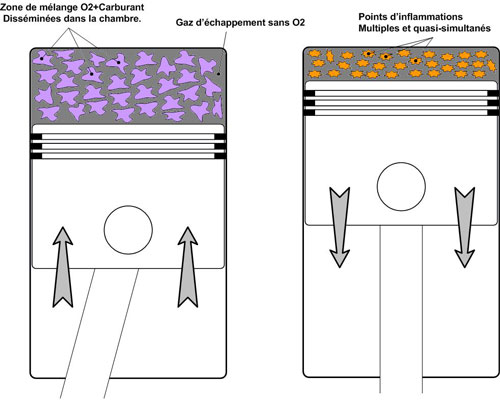 Le principe consiste à admettre un mélange homogène d'air et de gazole dans le moteur, pour obtenir par auto-allumage une combustion instantané de ce mélange.
