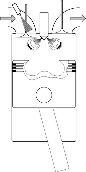 La technique de préparation du mélange devant assurer le dosage de l'air frais, du carburant et des gaz d'échappement ainsi que leur répartition spatiale. Il est évident que l'aérodynamique interne de la chambre de combustion et la gestion de l'injection seront les facteurs prépondérants.