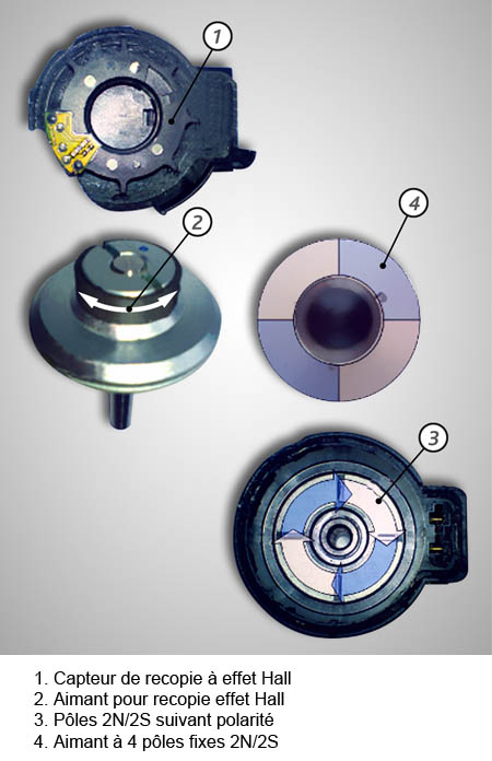 Par contre, un potentiomètre de position de soupape est disposée sur ces vannes. Cela permet au calculateur de connaitre avec précision la position de la vanne.