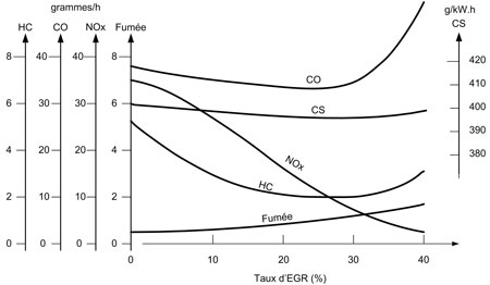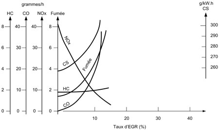 Le recyclage doit être appliqué avec une grande précision pour ne pas perturber le fonctionnement du moteur. Trop de recyclage, entraine une augmentation des autres rejets polluant du moteur.