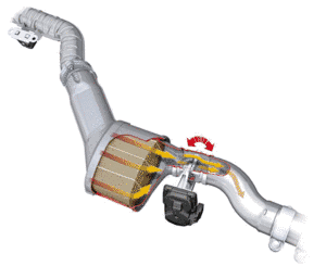 Le système EGR basse pression consiste à réintroduire des gaz d'échappement à l'admission du moteur. La différence avec un système conventionnel est que les gaz d'échappement sont prélevés en aval du filtre à particules et donc dépourvus de suies.