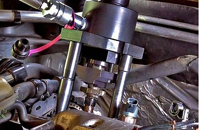 Des outils d'extraction hydraulique existe, ils permettent de retirer l'injecteur de la culasse, lorsque l'arrache à inertie n'a pas été suffisant. L'utilisation de tels outil nécessite le démontage de la bobine de l'injecteur et donc son passage au banc ou son remplacement sera nécessaire.