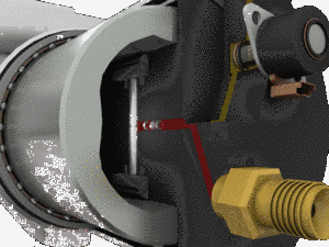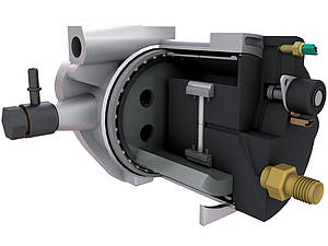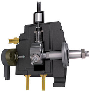 Un anneau à cames et des patins porte galets permettent de mettre sous pression le carburant.