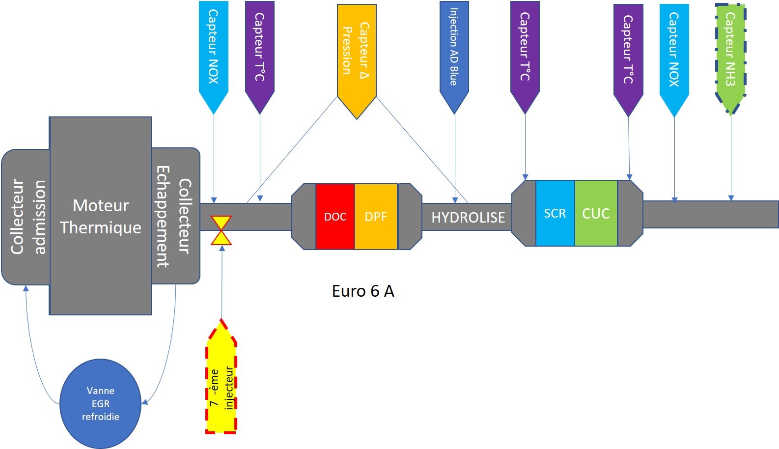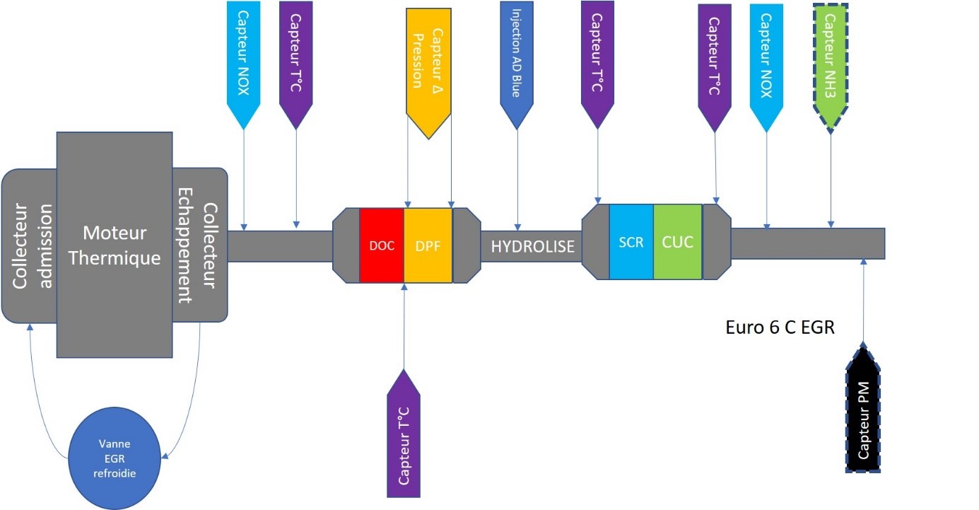 Avec l'apparition de la nouvelle norme Euro 6 et sa limitation à 10 ppm de NH3 (ammoniac), certains constructeurs ont ajouté à leur dispositif de traitement des gaz d'échappement un capteur d'ammoniac en sortie du Clean Up.