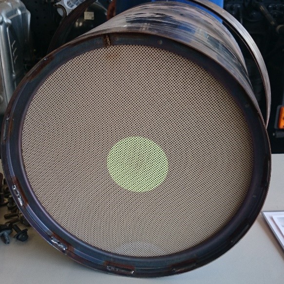 Le filtre à particules (FAP) est un bloc monolithique poreux en carbure de silicium (SiC). Son rôle est de filtrer et d'emmagasiner les particules de suies créées lors de la combustion.