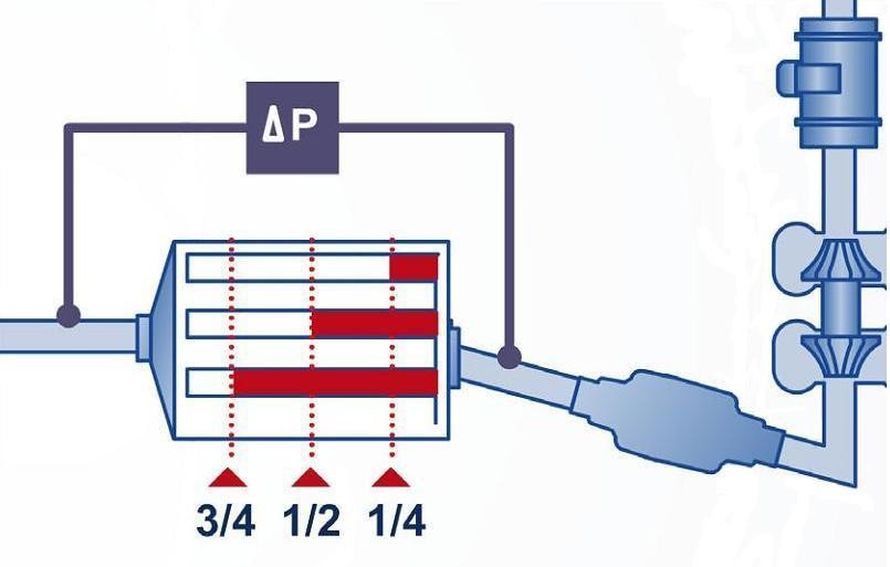 En fonction de l'état de charge du filtre à particules, la pression différentielle augmente et le calculateur pourra lancer si besoin une régénération active.