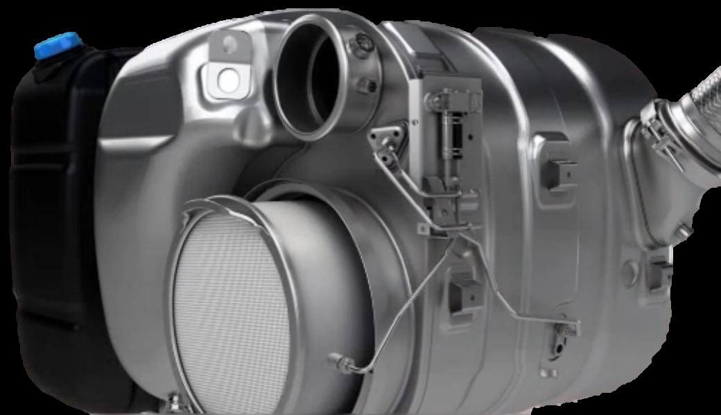 Le filtre à particules est intégré à l'ensemble du dispositif de post traitement des gaz d'échappement. Il est toujours placé en aval du catalyseur d'oxydation.