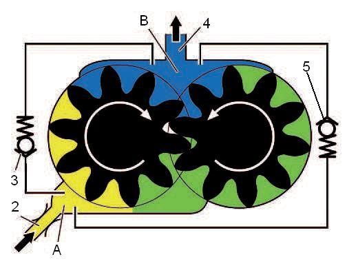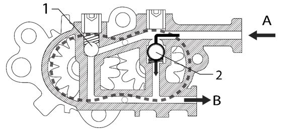 La soupape de dérivation (1) s'ouvre en cas de surpression à la sortie B.