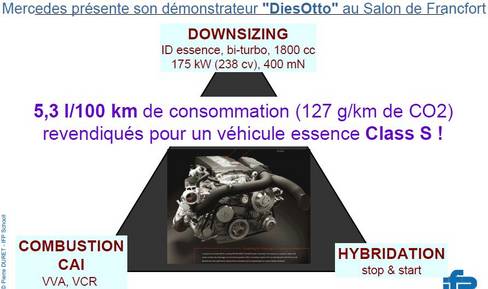 Sur le moteur essence le mélange Air/Essence est enflammé par la bougie d'allumage. La quantité d'essence injectée est importante (plus importante que sur le moteur diesel), la température de combustion est élevée, le rendement du moteur reste faible (le moteur essence consomme plus que le moteur diesel). La combustion par auto-inflammation va consister à supprimer la bougie d'allumage et permettre ainsi une inflammation spontanée de l'essence. Ce mode de fonctionnement permet d'optimiser le rendement du moteur et de réduire la consommation d'essence.